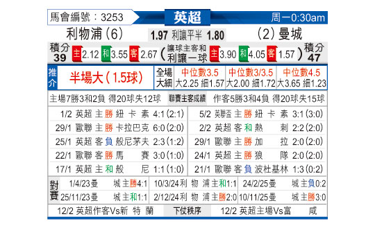 [英超] 利物浦vs曼彻斯特城